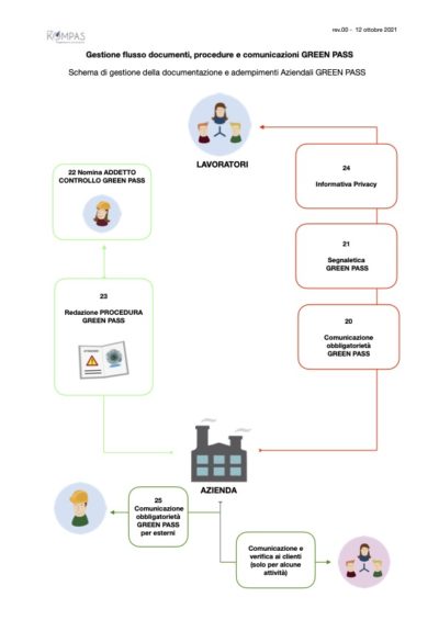 Come con in protocollo Covid19 (clicca qui) abbiamo elaborato una gestione dei documenti relativi al GP. Il nostro “Gestione flusso documenti, procedure e comunicazioni Green Pass” riassume tutti gli documenti di cui le aziende dovranno dotarsi dal 15 ottobre 2021.