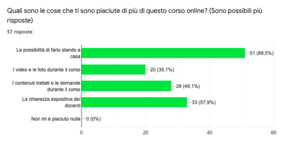 La formazione online piace sia per la qualità del corso, che per la possibilità di gestire il tempo in maniera autonoma. Questi feedback così positivi ci danno entusiasmo per continuare la nostra opera di perfezionamento dei corsi online con metodologia EMT.