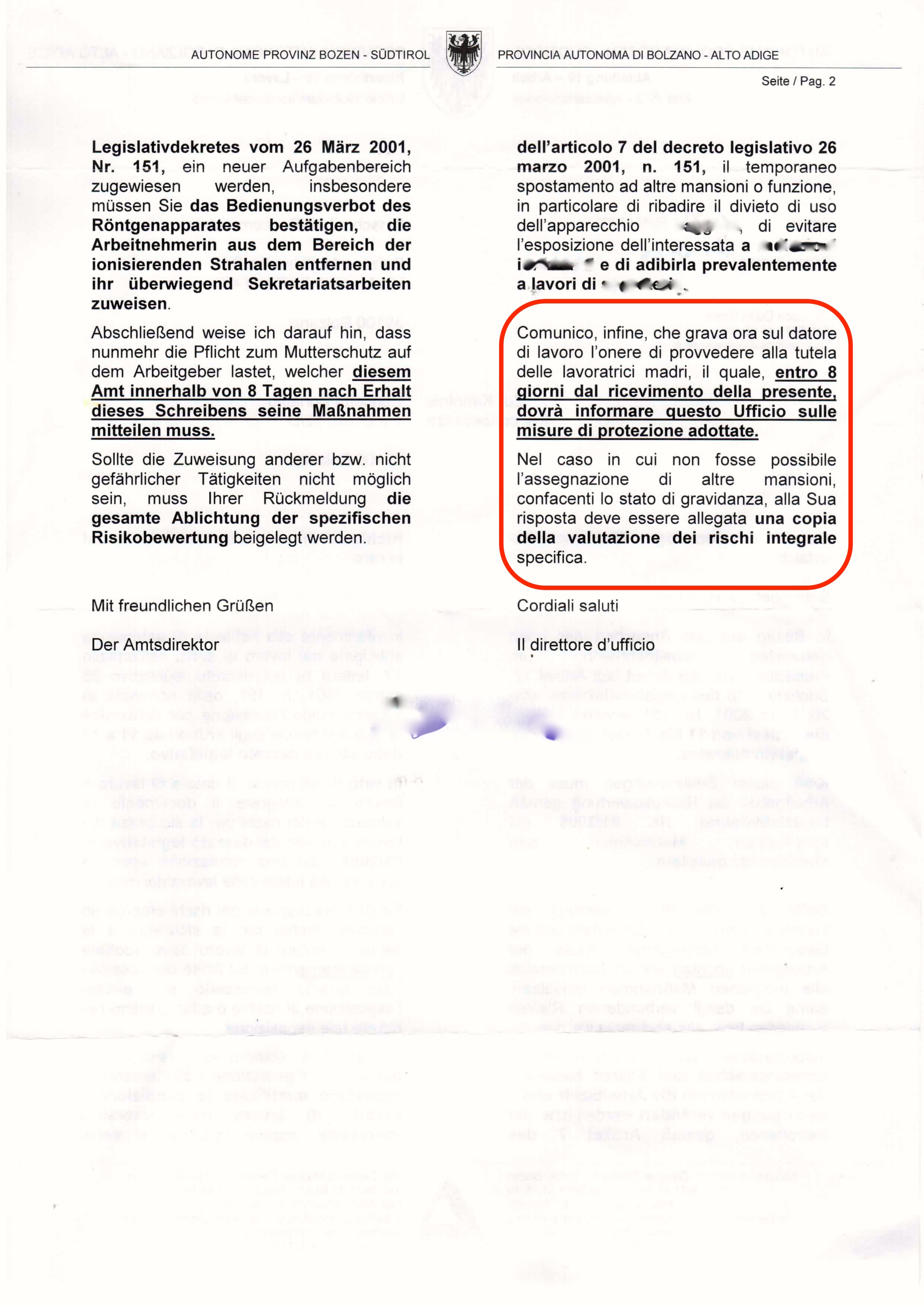 Ed è il caso proposto oggi. Con la richiesta della valutazione specifica inerente alla tutela delle lavoratrici madri.