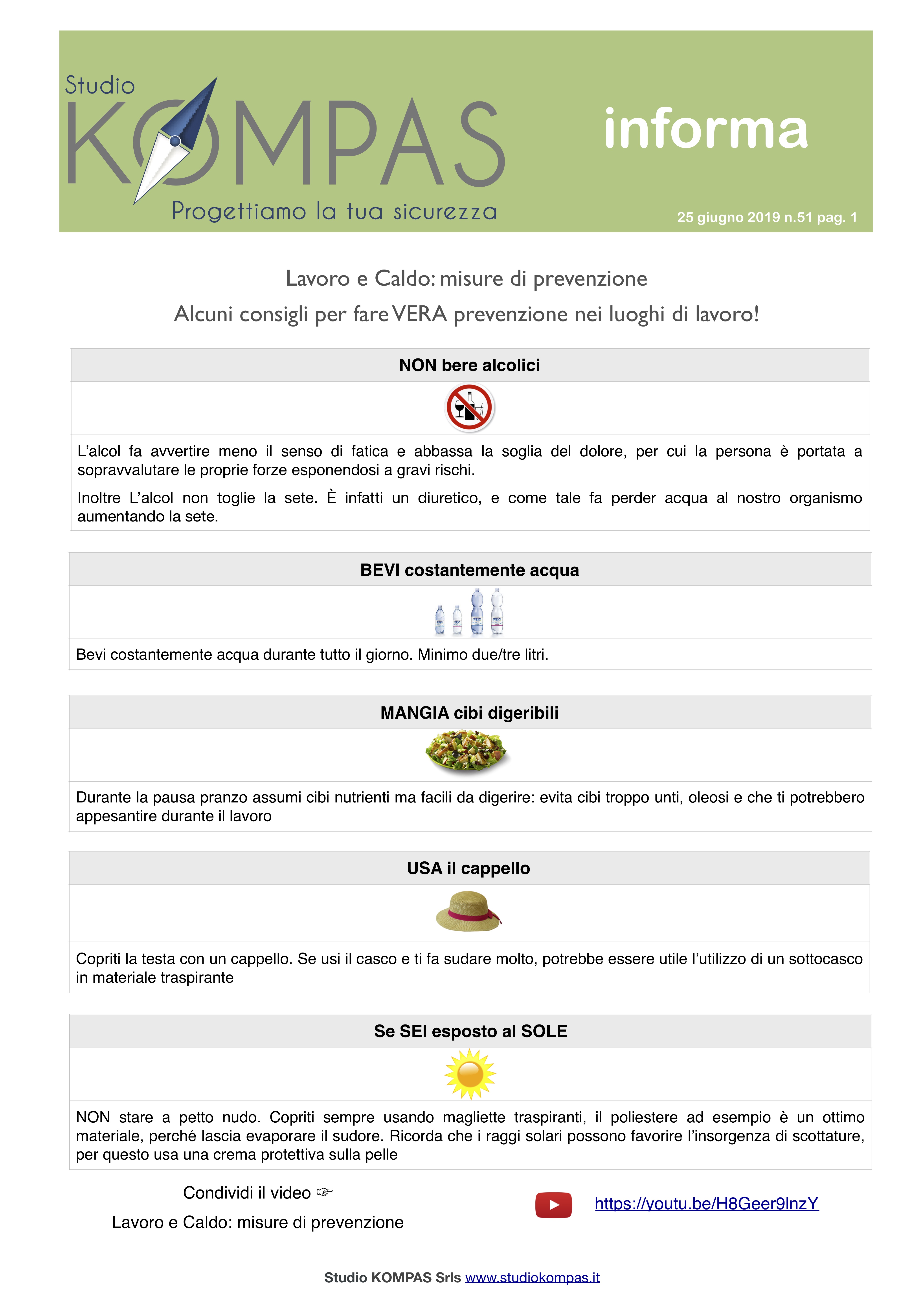 Questa volta non ci siamo “limitati” a pubblicare un breve vademecum scritto, ma abbiamo voluto fare un video specifico sull’argomento. In quanto riteniamo che possa attirare maggiormente l’attenzione di tutti gli attori coinvolti nel processo di prevenzione: dal datore di lavoro, preposti e lavoratori.