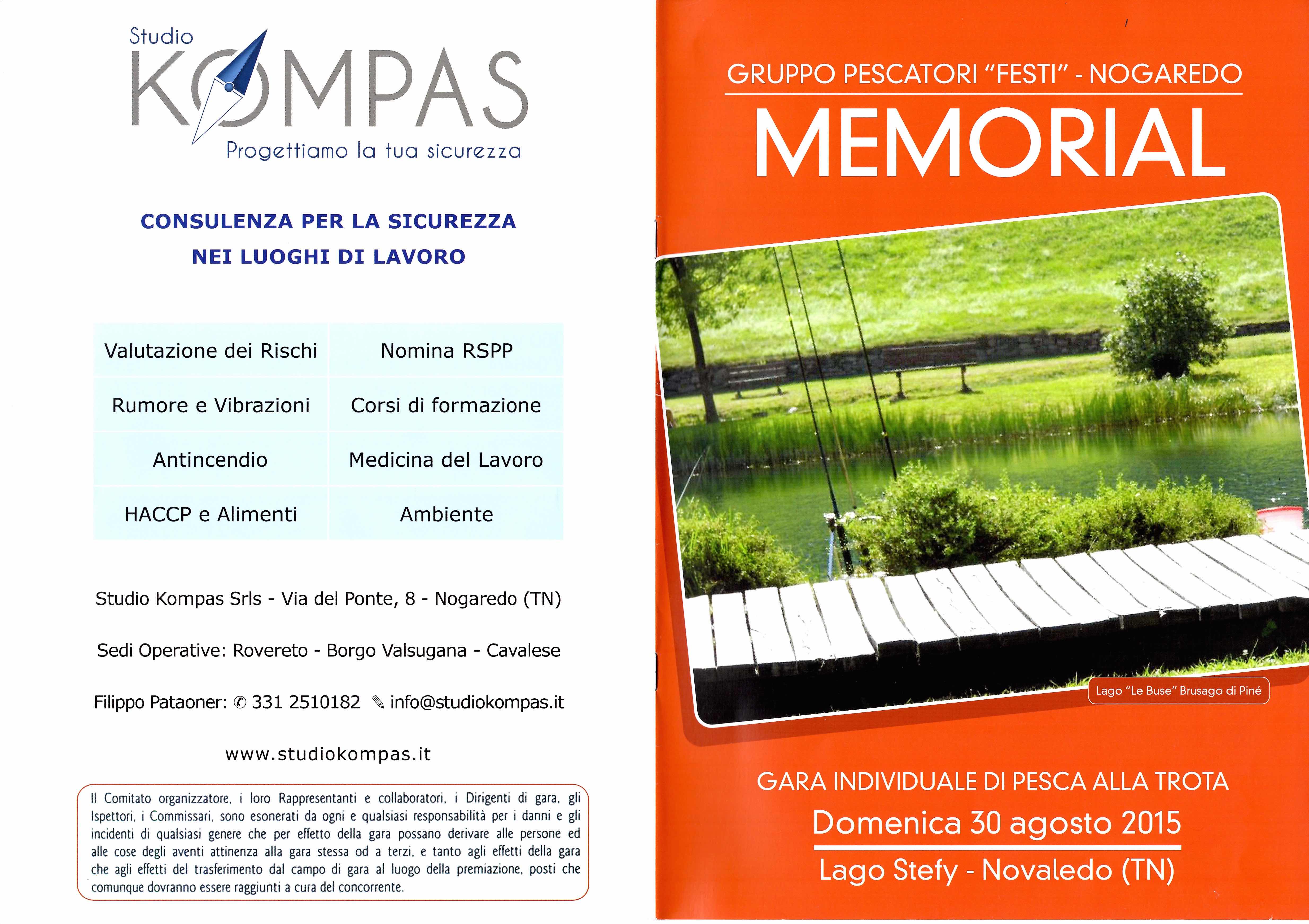 In occasione del Memorial “Festi”, che si terrà Domenica 30 Agosto 2015 c/o Lago Stefy a Novaledo (TN), Studio Kompas ha optato per la sponsorizzazione dell’evento tramite la pubblicazione, sul retro del giornalino del Memorial, dei contatti e servizi proposti dal nostro studio.