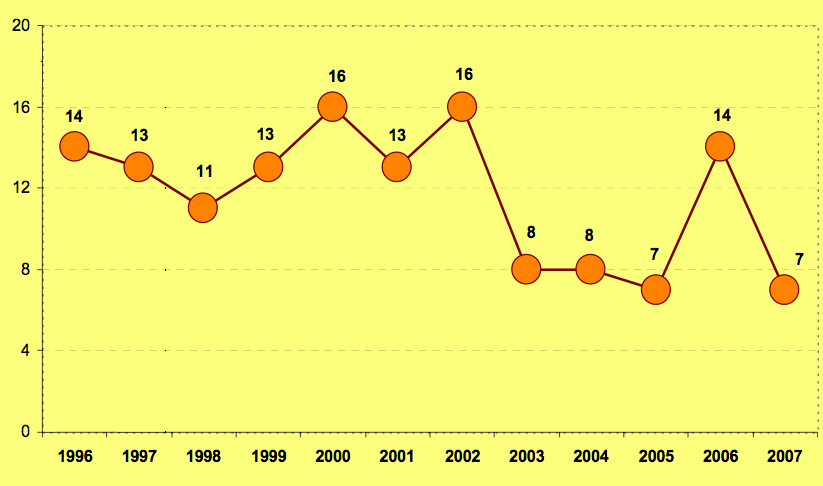 – Ho proceduto all’analisi del periodo 1996/2007 con incidenti ad esito mortale avvenuti in regione; questi sono i dati pervenuti: